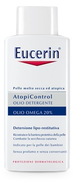 Deterge delicatamente, idrata la pelle atopica, riduce il prurito e previene un'ulteriore secchezza. Per un uso quotidiano, durante le fasi acute e quelle di remissione. L'elevato contenuto di oli naturali (50%) con il 20% di Omega, ammorbidiscono e proteggono la pelle dalla secchezza e riducono il prurito. Eucerin AtopiControl Olio Detergente si applica sulla pelle umida durante la doccia o il bagno quotidiano ed è perfetto per gli adulti, i bambini dai 3 mesi in su. Con i bambini molto piccoli è però consigliabile utilizzarlo solamente come additivo per il bagno. Per minimizzare il rischio di reazioni allergiche, Eucerin AtopiContol Olio Detergente è senza profumo, coloranti e conservanti. Studi clinici e dermatologici dimostrano un'ottima tollerabilità cutanea su pazienti con pelle atopica.