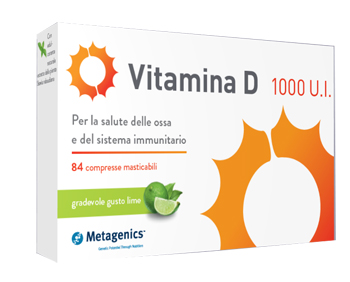 Integratore alimentare a base di vitamina D con edulcoranti, in compresse masticabili. Per la salute delle ossa e del sistema immunitario.